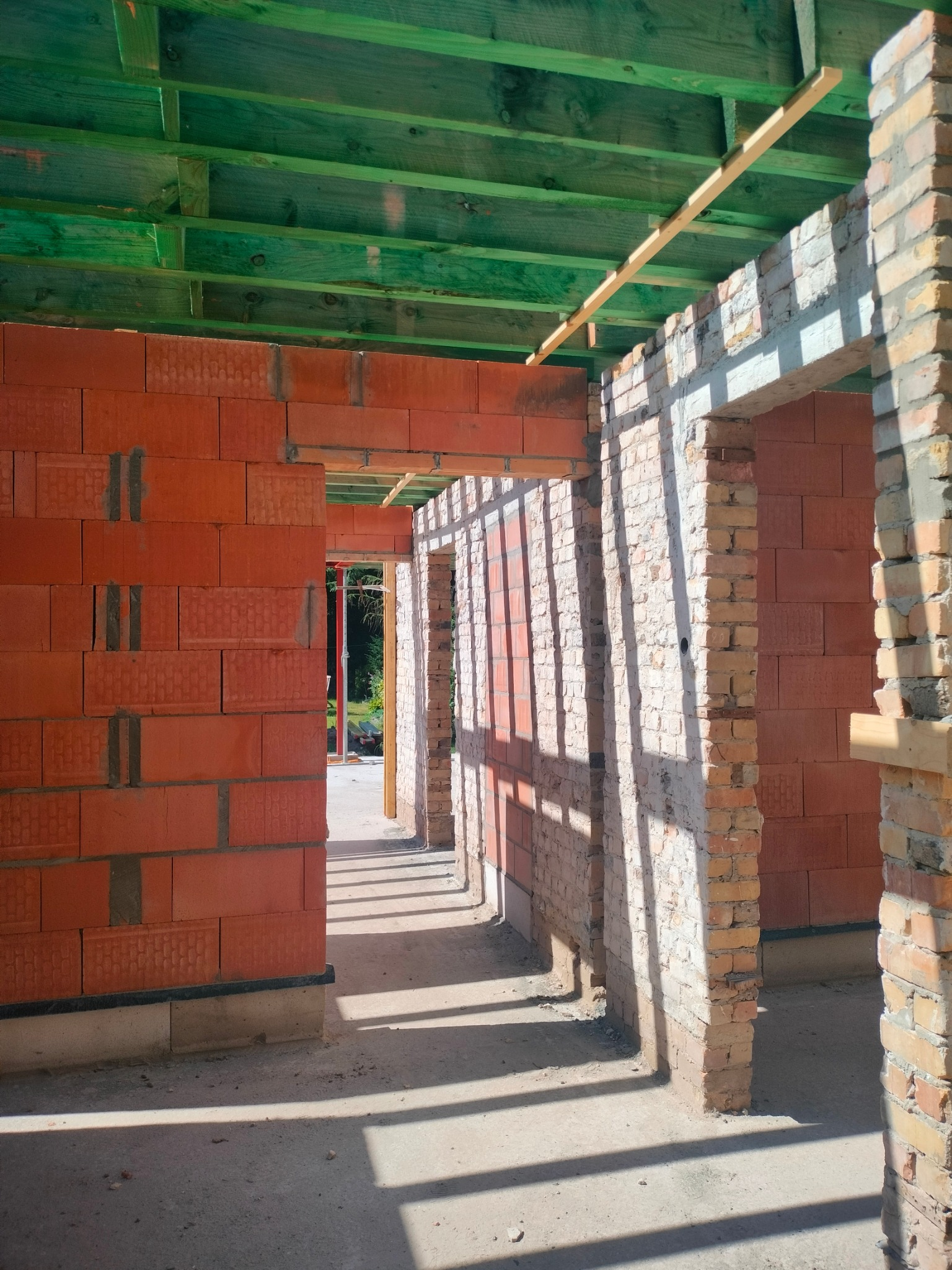 Voor deze renovatie kozen we voor de traditionele bouwmethode, met snelbouwmetselwerk, PIR-isolatie en gevelsteen. De nieuwe verdiepingsvloer en scheidingswanden op de verdieping worden uitgevoerd in houten roostering. Het hellend dak wordt geïsoleerd met ingeblazen cellulose, een duurzaam materiaal op basis van gerecycleerd papier. Het biedt niet alleen een goede ecologische keuze, maar zorgt ook voor aangenaam thermisch comfort tijdens warme zomermaanden.